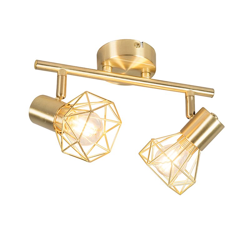 Toto je bodové svetlo Mosh 2 v zlatom/mosadznom prevedení! Minimalistický oceľový rám je ideálny pre krásnu dekoratívnu žiarovku, ktorú je možné vidieť! Pre ešte väčšiu atmosféru sa lampa dá stmievať aj externým stmievačom (stmievač nie je súčasťou balenia). Staňte sa súčasťou trendsetterov a osvetlite svoj domov alebo kanceláriu štýlovo! Toto bodové svetlo sa dá veľmi ľahko nastaviť pomocou guľového kĺbu. To umožňuje tomuto stropnému svietidlu svietiť do všetkých smerov. Lampa je vysoká 18,5 cm a má priemer 43 cm. Montážna doska má priemer 8 cm. Toto bodové svetlo má dva malé zásuvky E14 a dodáva sa bez žiaroviek, takže si ich nechajte objednať samostatne (max. 40 W na žiarovku). Doplňte svoj interiér o Mosh 2!