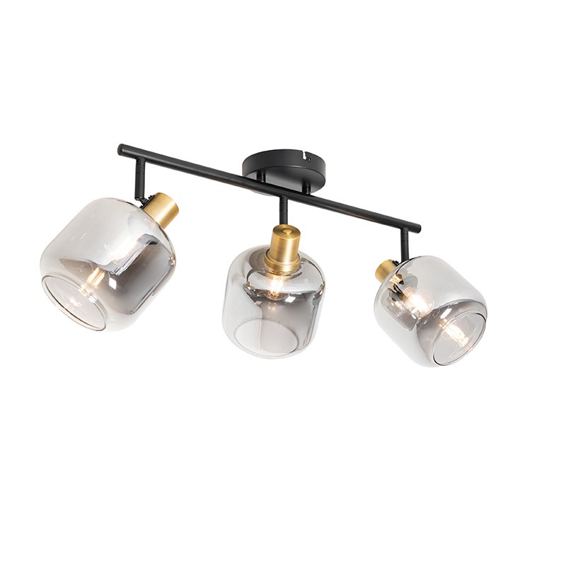 Stropné bodové čierne s dymovým sklom podlhovasté 3-svetlo – Zuzanna